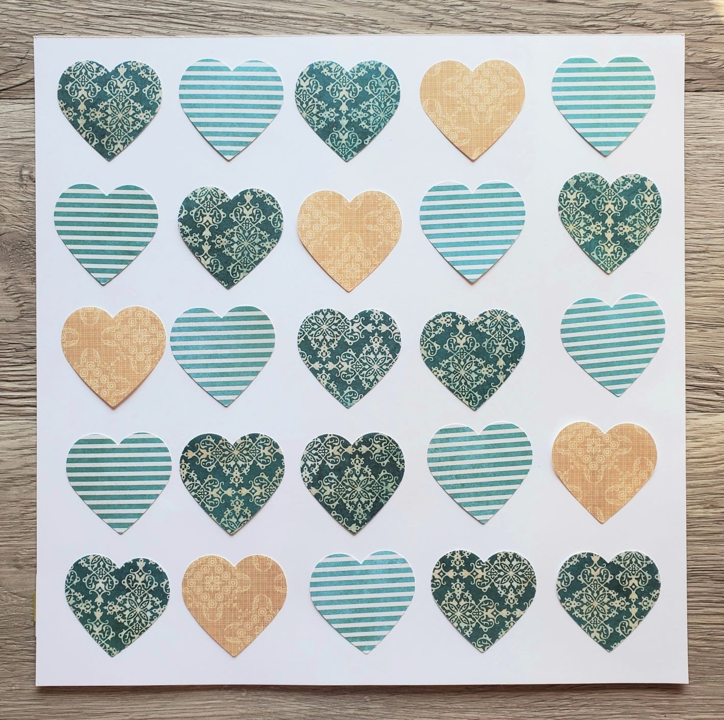 You can punch shapes or cut shapes of your choice using scissors. You can use patterned paper, cardstock or both from your pile of scraps. Once you have several of them you are ready to start making your page background!