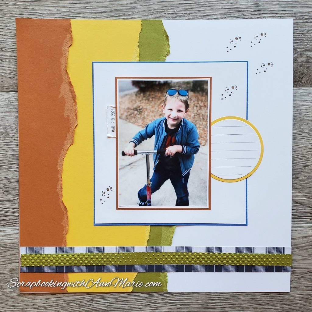 Here is my finished page with an example of using torn paper. I added a simple border and a little bit of stamping to finish the look.