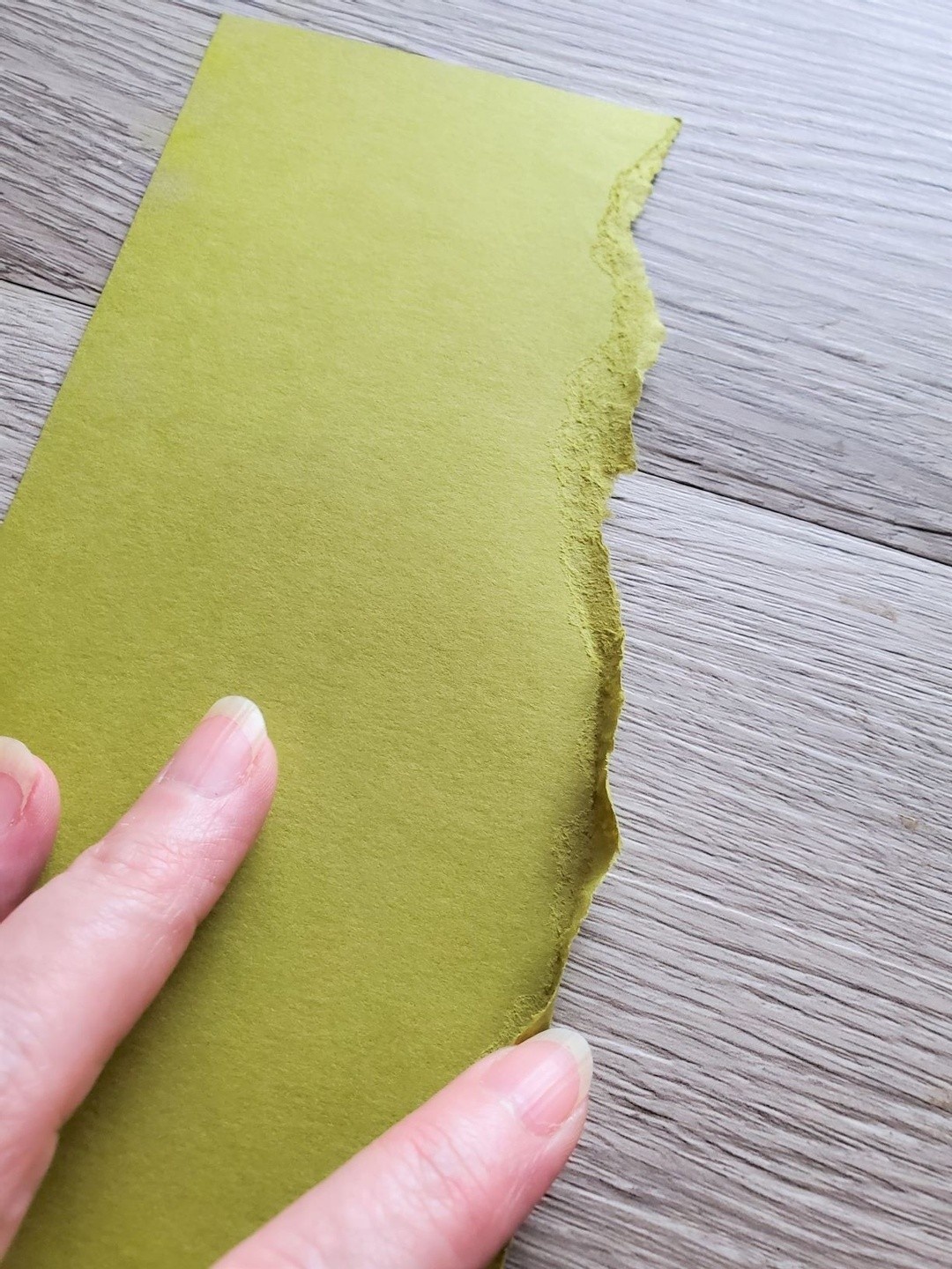 Ok, time to call on that courage! This part is tough for some folks and I totally get it! I was afraid to try it too, but now it is much less scary for me! Time to start tearing your paper! You can start slow and just tear one piece or you can tear several and layer them. I have found that the slower you go when tearing the closer to a straight line you will get. You can experiment on a few pieces and see which look you like the best.